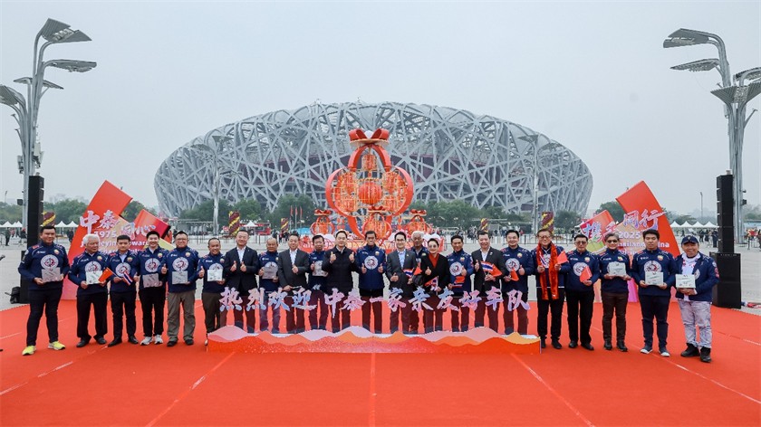 在彩獅翻騰的熱烈氛圍中,“中泰建交50周年友誼之旅”車隊緩緩駛?cè)氡本W林匹克公園慶典廣場,拉開本次慶?;顒拥尼∧?。歡迎儀式中,中國人民對外友好協(xié)會會長楊萬明與泰國前副總理、泰中友好協(xié)會會長功?塔帕朗西(Korn Dabbaransi)先后發(fā)表致辭,積極評價了這段跨越山海的友誼征程。隨后,車隊隊員被授予紀(jì)念證書,并與中泰各界友好人士合影留念,為這場慶祝中泰建交50周年的標(biāo)志性活動留下動人瞬間。