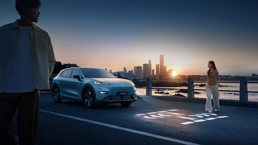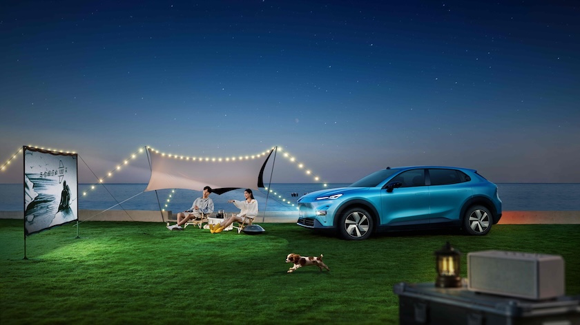 深藍S05 搭載的DEEPAL百萬像素智趣光影大燈,采用有華為HUAWEI XPIXEL技術(shù)加持的130萬像素大燈,可實現(xiàn)120英寸投影畫幅,搭配2個25W車外音響,可隨需打造戶外KTV、星空電影院、光影游戲廳、光繪涂鴉墻等場景的同時,大燈也支持輔助行車功能。