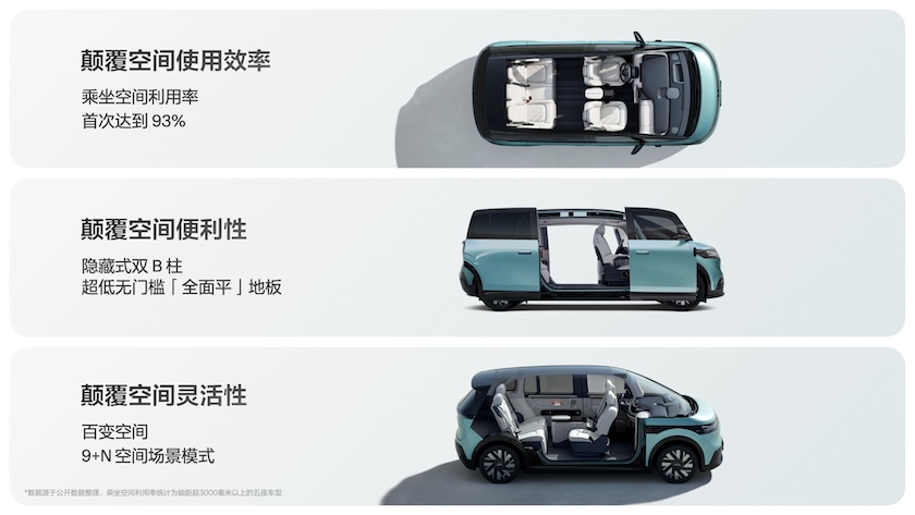 憑借浩瀚-M架構(gòu)的空間布置能力,極氪MIX通過全球首創(chuàng)的斜置防火墻技術(shù),在保障安全的前提下,將儀表臺(tái)和空調(diào)前推,采用短前后懸設(shè)計(jì),全面釋放前排空間;車尾采用更緊湊的同軸電機(jī),將后地板第二橫梁后移,把空間還給二排座艙。極氪MIX打破之前大多數(shù)品牌,通過更長車身達(dá)成更長軸距的方式,僅以近4.7m的車長,實(shí)現(xiàn)了超3m的軸距,車內(nèi)有效乘坐空間可達(dá)93%,是全球第一輛突破90%的量產(chǎn)乘用車。