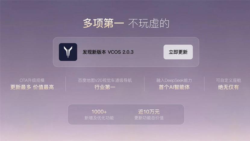此次升級(jí)共新增及優(yōu)化超1000項(xiàng)功能,實(shí)現(xiàn)了智能體深度進(jìn)化、首搭視覺車道級(jí)導(dǎo)航、個(gè)性化微場(chǎng)景的打造、用戶自定義座艙的創(chuàng)新、桌面與生態(tài)的全面煥新以及高水準(zhǔn)智能服務(wù)的提升等多個(gè)維度,重新定義了高端新能源汽車的智能化標(biāo)準(zhǔn),為用戶帶來前所未有的個(gè)性化、智能化出行體驗(yàn)。