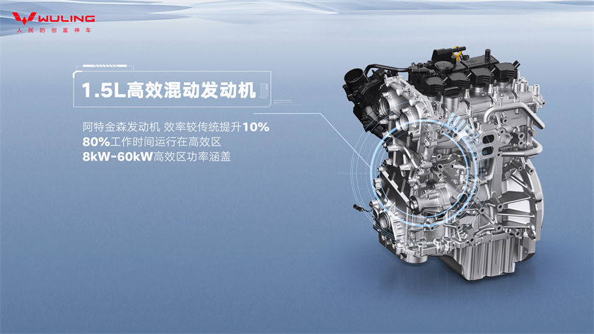 五菱紅標(biāo)增程技術(shù)采用1.5L高效混動發(fā)動機(jī),采用Masking設(shè)計(jì)高效燃燒系統(tǒng)和阿特金森循環(huán),較傳統(tǒng)燃油發(fā)動機(jī)熱效率提升10%,80%的工作時(shí)間處于高效區(qū),百公里油耗低至4.3L(NEDC工況)。
